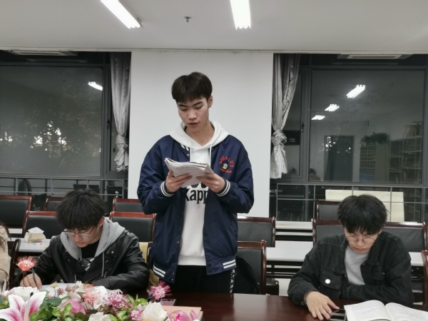 活动以深入学习贯彻全会精神,明确国家进一步的发展目标以及了解我国面临的发展挑战为中心,进行多方面的讨论,并对我院学子提出要求。首先,陈翩带领大家学习全会主要内容,从我国目前发展形势的分析、“十三五”期间全面深化改革取得的重大突破、到二〇三五年我们要实现的9方面远景目标、“十四五”时期经济社会发展的6方面主要目标到实现奋斗目标的12方面具体举措。陈翩表示当代学子应当学习好党中央作出的重要战略部署,深知我们国家目前面临的“世界百年来未有之大变局”,抓住机遇,迎接挑战,奋勇前进,为建设社会主义现代化国家以及实现中华民族的伟大复兴贡献力量。
