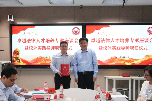 为了进一步完善法学专业应用型人才培养方案,提高专业办学水平,2022年5月28日下午,法政学院在A317举行卓越法律人才培养专家座谈会暨校外实践导师聘任仪式。