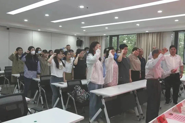 5月17日下午,盐城师范学院原政史系主任、88岁的老党员王文华面对党旗、紧握右拳,和即将毕业的法政学院和马克思主义学院40名毕业生党员一起重温入党誓词。