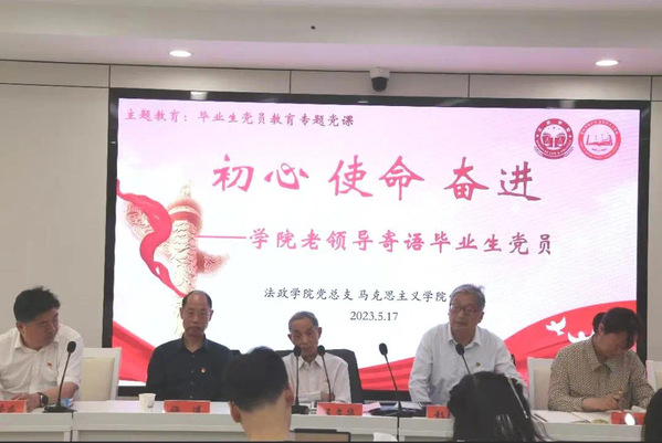 为给毕业生党员上好大学期间的“最后一次”党课,法政学院、马克思主义学院邀请原政史系主任王文华、原经济与法政学院党总支书记彭益民、原马克思主义学院党总支书记许进等三位学院老领导上了一堂以“初心·使命·奋进”为主题的党课,三位老党员与毕业生党员分享了自己入党的经历和如何做一名合格党员的思考。法政学院党总支书记冯春芳主持党课。