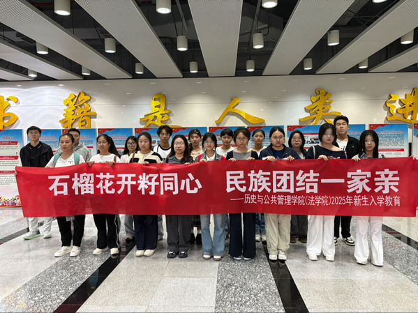 为深化民族团结进步教育,引导学生进一步铸牢中华民族共同体意识,历史与公共管理学院(法学院)面向2025级新生开展了“石榴花开籽同心,民族团结一家亲”民族团结教育主题活动。