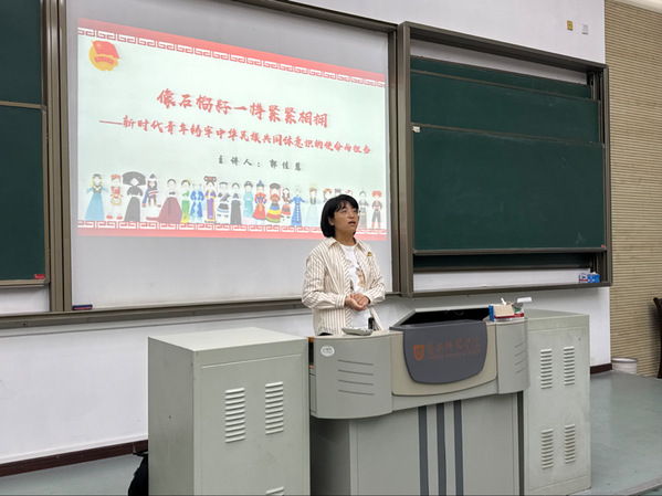 参观后,学院举办“新时代青年铸牢中华民族共同体意识的使命与担当”专题讲座,讲座由辅导员郭佳慧老师主讲。她讲解了我国的民族政策,阐释了铸牢中华民族共同体意识的核心要义,并通过展示民族团结事迹和丰富的民族文化活动,希望同学们深化认知认同、促进交往交融,以实际行动维护民族团结。