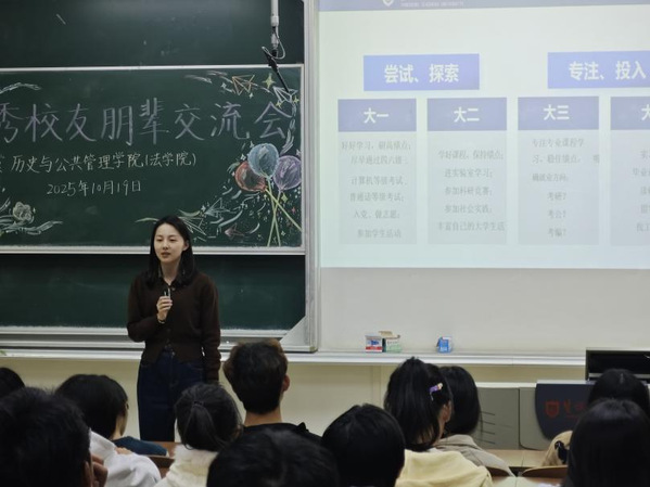 为助力2025级新生快速融入大学生活,10月19日晚,历史与公共管理学院(法学院)举办优秀校友经验分享交流会。邀请2020级历史师范专业校友王妍苏重返校园,现就职于中国农业银行江苏盐城分行,她结合四年大学的成长故事与实践心得,为新生们带来了一场兼具深度、温度与实用性的分享,为新生的大学生活点亮方向。