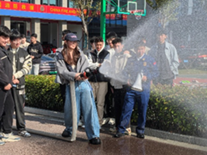 接着是核心任务流程体验。消防员采用“讲解+演示+体验”相结合的方式,引领学生参观体验各类消防车,学习干粉灭火器灭火,练习使用高压水枪等。该环节让同学们更深刻地了解了消防救援的核心任务流程。