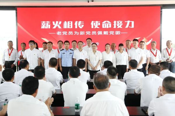 盐东镇党委开展庆祝中国共产党成立104周年主题活动暨“七一”专题党课。全体人员集中观看教育片《焦裕禄的独白》,感悟“亲民爱民、艰苦奋斗、科学求实、迎难而上、无私奉献”精神,激励党员干部以榜样为镜,践行初心使命。该镇还为8名“光荣在党50年”老党员代表颁发纪念章,老党员为新党员佩戴党员徽章。活动最后,全体党员面对党旗,高举右拳,以铿锵有力、饱含忠诚的语调,重温入党誓词,将活动推向高潮,铮铮誓言响彻会场,宣示着盐东镇党员干部接续奋斗、再创辉煌的坚定决心。