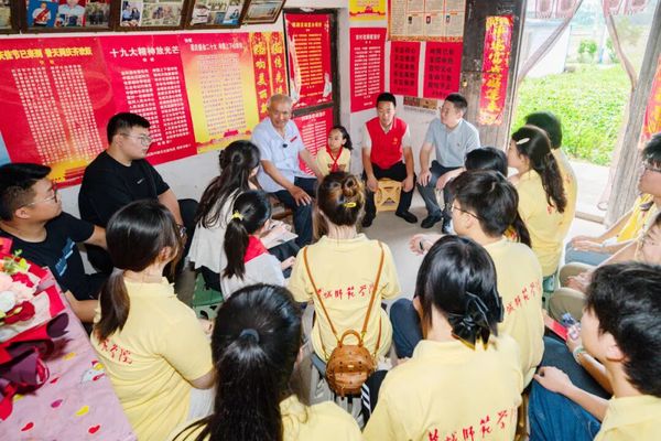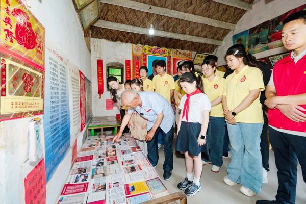 新兴镇新时代文明实践所联合甘露村、盐城师范学院历史与公共管理学院共同开展“一封信·一颗心·一世情——寻访‘快板爷爷’周学书的初心之路”主题文明实践活动。83岁老党员周学书带领大家参观他的“荣誉墙”,满墙的快板手稿和泛黄证书,都在诉说着这位基层老宣传员的岁月印记和执着坚守。周学书深情回顾入党初心及奋斗历程,现场表演快板作品,铿锵节奏、真挚情感感染全场。活动尾声,在周老的悉心指导下,大学生们纷纷拿起竹板,尝试敲打出革命精神的韵律,让红色薪火在青年一代手中传递、延续。