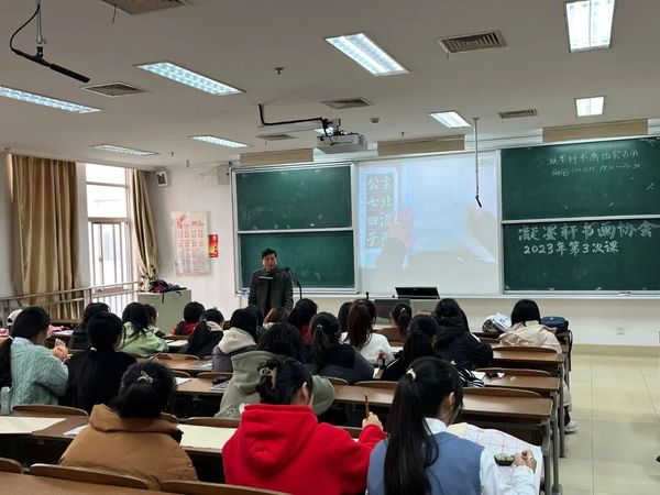 “一点禅灯半轮月,今宵寒较昨宵多。”冬已至,天渐寒,伴随着冬的脚步,我院凝墨轩书画协会开展了“余秋携霜去,冬令送墨来”书法课堂活动。11月15日下午,同学们又相聚在了通榆校区主楼B304等教室,盐城市老干部书画联谊会的沈家喜、宋俊成,辛从堂、袁明宏以及贾宗荣老师莅临指导授课。