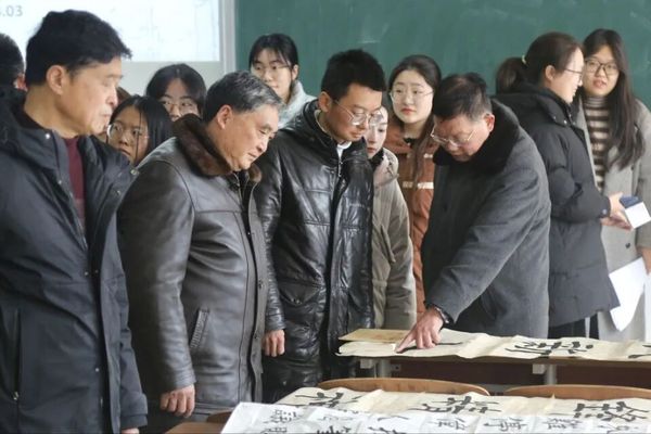 此次活动荣幸地邀请到了盐城市老干部书画联谊会的退休老干部们莅临指导。活动现场,同学们围绕“雷锋精神”和“志愿服务”进行书法创作,一幅幅作品或遒劲有力,或清新秀丽,充分展现了同学们对雷锋精神的深刻理解和热爱。老干部们则耐心细致地给予点评和指导,让同学们在书法艺术的道路上更进一步。