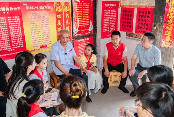 为深入学习老党员忠诚于党、服务人民的崇高品质,传承红色基因,历史与公共管理学院(法学院)“烽火铸魂、青春筑梦”革命薪火传承团近日前往新兴镇甘露村开展了“一封信·一颗心·一世情”主题寻访活动。实践团成员与村里的小学生代表听83岁老党员周学书讲述了跨越半个多世纪的忠诚与奉献。