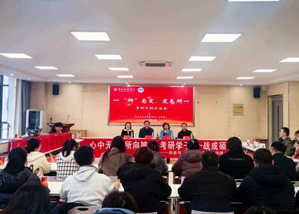 为提振考研学子备考信心,12月10日,历史与公共管理学院(法学院)在公共教学楼五楼实训室召开2026届考研冲刺动员大会。学院党政领导班子、毕业班班主任、全体辅导员及考研学子代表参会,活动由学院党委副书记高娟主持。