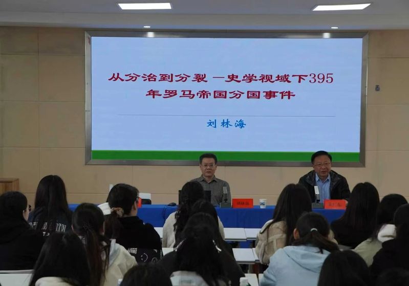 为夯实学生的学科基础、拓宽学术视野,3月27日上午,学院特邀北京师范大学历史学院院长刘林海教授作“从分治到分裂:史学视域下395年罗马帝国分国事件”为主题的学术讲座,讲座由学院党委书记朱广东主持,历史学专业部分师生参加学习。